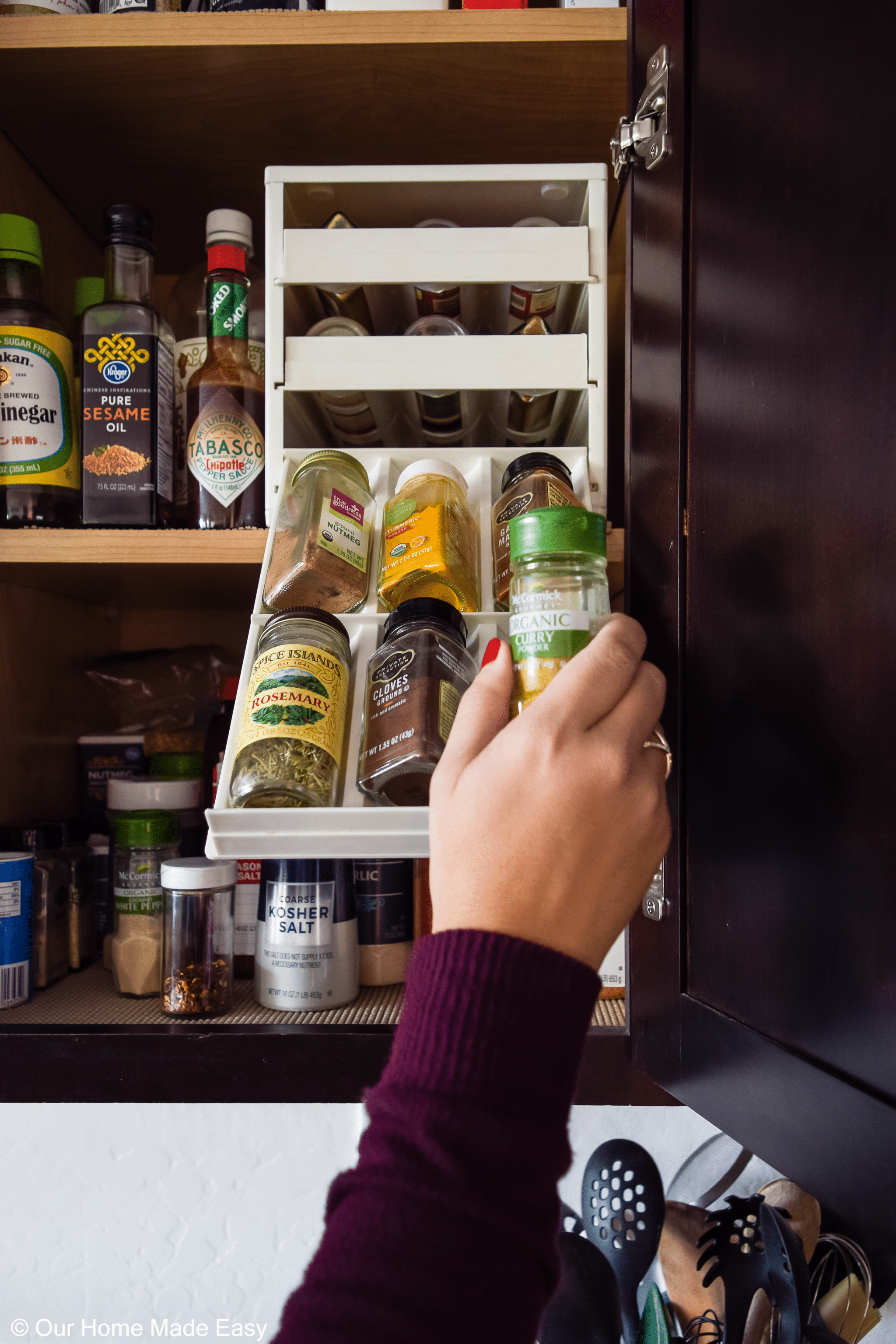 With your spices neatly arranged and easily visible, cooking becomes a more streamlined and enjoyable process. No more rummaging through cluttered cabinets or digging through disorganized drawers. Everything is at your fingertips, saving you time and frustration.