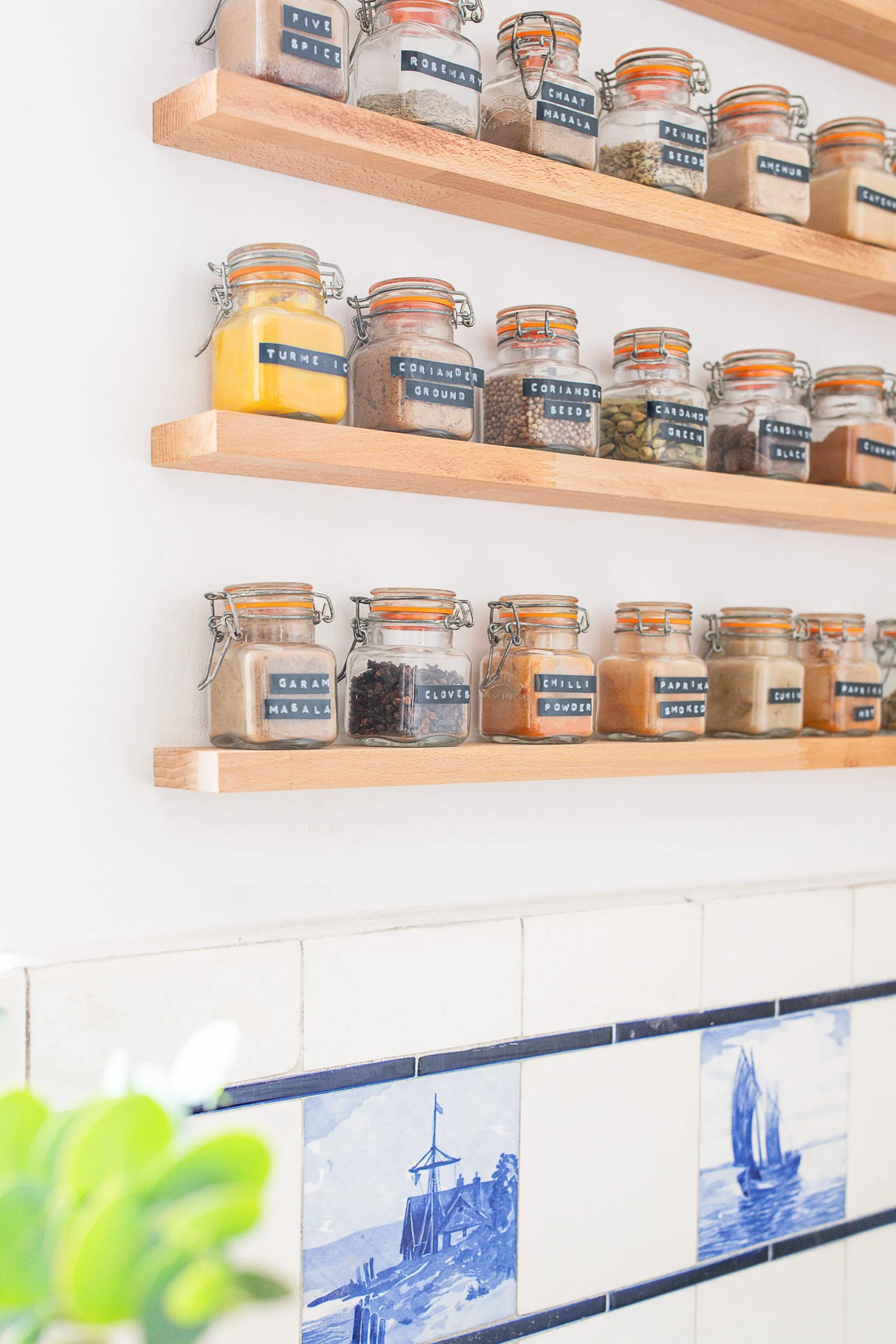One of the most impactful steps you can take is to unify your spice collection. Invest in uniform, airtight glass jars. Not only do they look incredibly neat and cohesive, but glass also helps preserve the freshness and aroma of your spices.